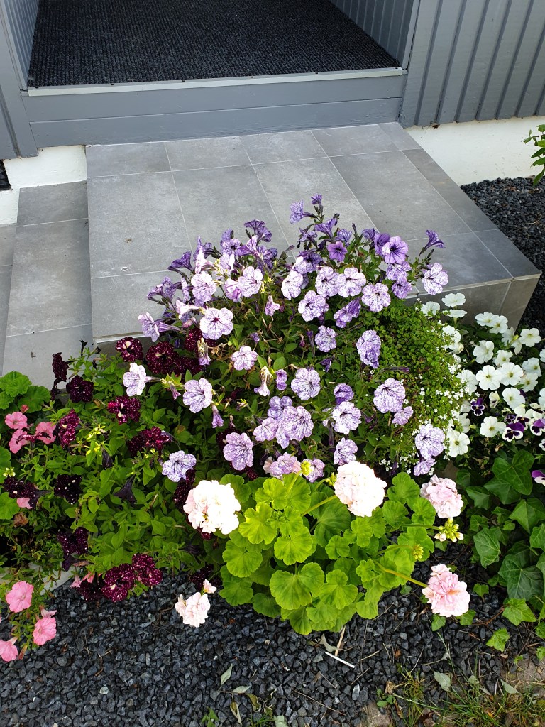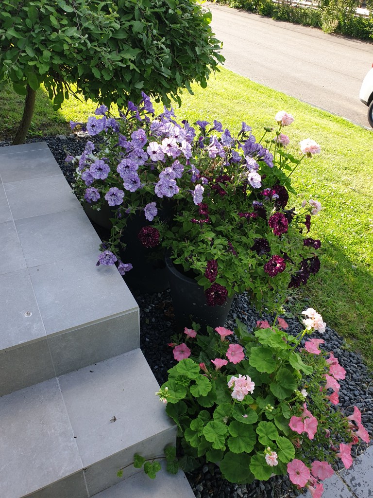 Två av mina rabattrosor har slagit ut medans vi var borta😍 En dahlia är snart också utslagen och hortensiorna blommar nu för fullt. Blommorna i krukorna levererar också rikligt med blommor i år vilket är jätteroligt.