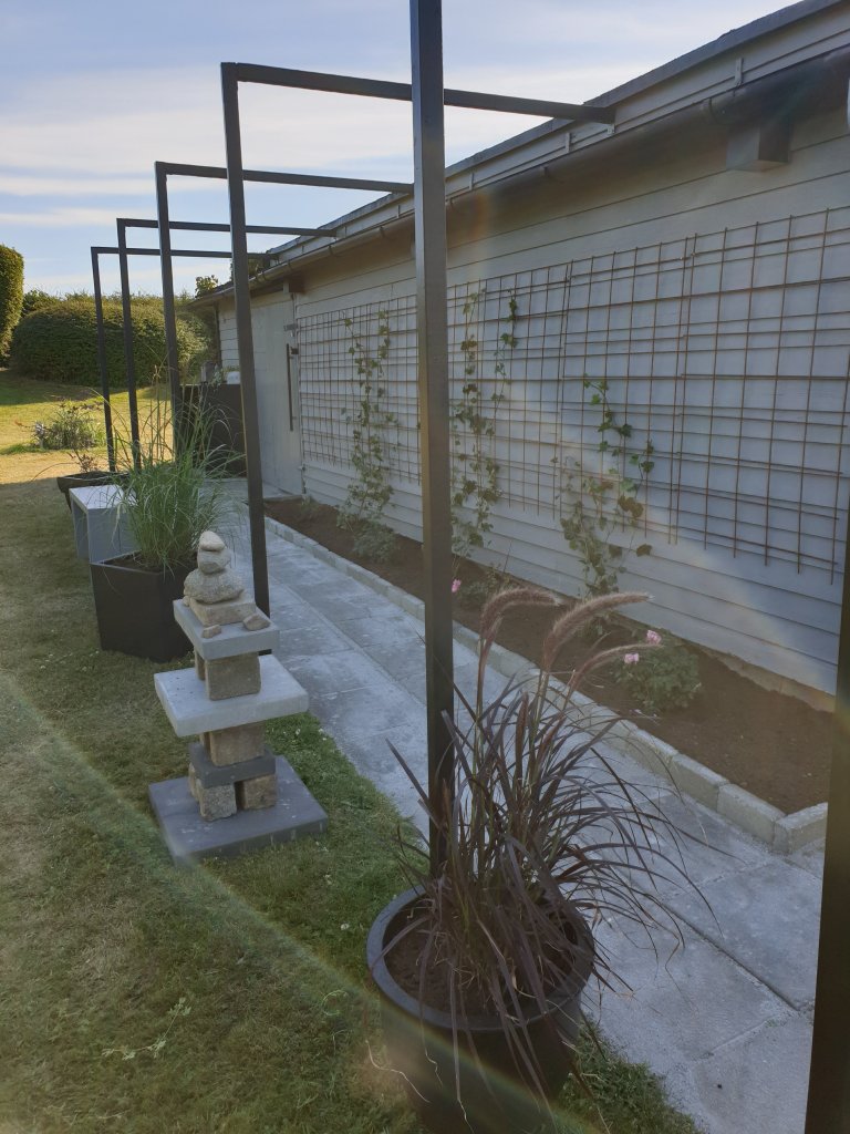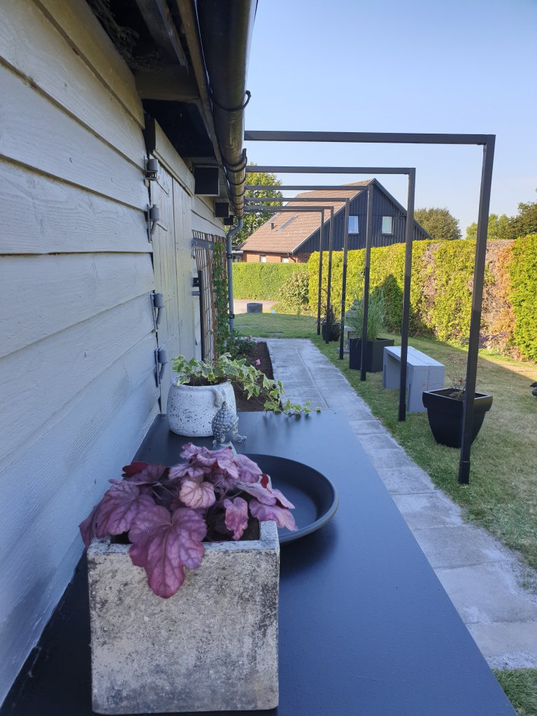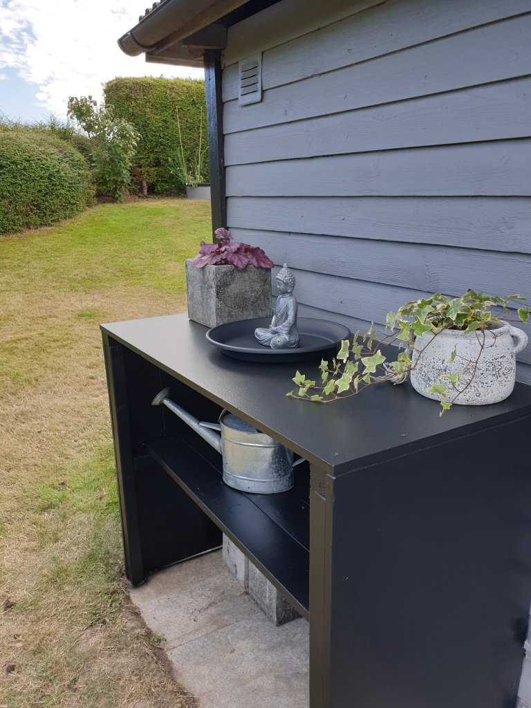 Godkväll! Här hemma går det som ni vet alltid undan när jag och min man hittar på nya projekt🙂 Igår målade Andrej bordet som han byggt av vårt gamla pingisbord och jag åkte iväg och handlade växter, träd och murgröna. Blev lite besviken då de endast hade 3st murgröna kvar på blomsterlandet, men vi får börja med det så får jag handla mer sen. Hittade en kruka, japansk lönn, glansmiskantus ”red chief” och Rubrum som också är ett prydnadsgräs.Blev väldigt nöjd med dessa. Övriga krukor hade vi hemma sedan innan och dessa målade vi svarta. Åkte även till byggmax och handlade armeringsnät. Väl hemma igen så satte jag igång direkt och planterade och placerade ut allt. På kvällen när jag stod och beskådade vårt verk så kände jag att det saknades något och sa till Andrej att vi borde ha en liten bänk där också. Vi började genast googla, men hittade ingen som föll oss (läs mig) i smaken och var byggd så som jag ville ha den så jag kom på idéen att vi kan ju bygga en själv och måla den. Andrej var helt med på min idé och kom på att hans bror hade några reglar liggandes hemma som blev över efter hans trädäcksbygge så kl 22 igårkväll gick vi dit och bar dem hem på våra axlar. Väl hemma så satte vi igång och byggde direkt så den blev klar 23 igårkväll haha. Idag åkte jag till en annan blomsterlandet butik för att se om de hade några murgröna, men icke. Tänkte även att jag skulle åka och handla plattor och stenar till japanska lyktan idag efter jobb som jag tänkte bygga och skickade bild till Andrej på hur den ska se ut och frågade var han tyckte att jag skulle köpa stenarna och han erbjöd sig istället att åka till jem o fix och handla. 1 timme senare skickade han en bild till mig och hade då byggt lyktan också😂 Det var ju supergulligt av honom, men lite besviken måste jag säga att jag blev då det var mitt lilla projekt och något jag hade velat bygga själv. Oftast hinner jag inte med i hans tempo kan jag säga haha. Lyktan blev för övrigt precis så som jag ville ha den. Här kommer iallafall bilder på det färdiga resultatet (bortsett från att jag ska plantera mer murgröna). Ha en härlig helg!/ Madde