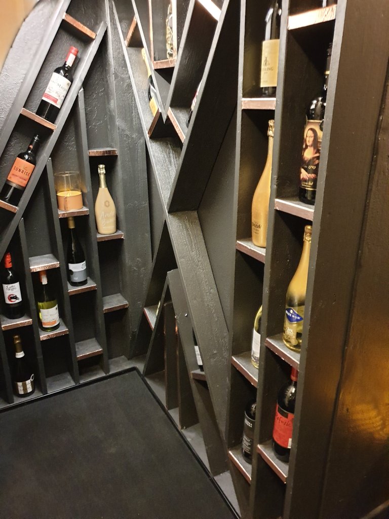 Sist jag skrev så berättade jag ju att vi skulle bygga en vinkällare och här går det undan som vanligt. Jag ritade och berättade för Andrej hur den skulle se ut och sen körde vi och inhandlade material. När vi kom hem så mätte vi och sågade och Andrej började bygga på en gång. Säg vad min käre man inte klarar att bygga. Han är helt fantastiskt duktig på allt han tar sig för och nu är den klar. Är så himla nöjd och den blev precis så som jag ville ha den. Vi har lagt en svart heltäckningsmatta som täcker allt golv, spraymålat spegeln, hängt upp guldiga sammetsgardiner in till de andra rummen, målat väggar och tak svart och våra egenmålade tavlor fick äntligen sin plats. Nu vill jag bara sitta där under trappen och njuta av hur fint det är. Hoppas ni får en trevlig kväll!/Madde