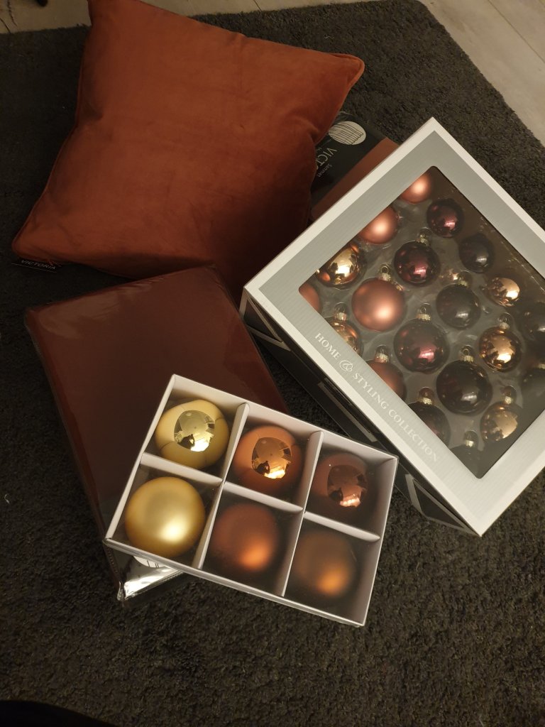 Nu mina vänner ska jag äntligen avslöja vilken årets julfärg blir hemma hos oss. Som några av er vet så byter jag färgtema varje år till jul. Något år var det blått och silver och något år var det grått och guld. Förra året var det vitt rosa och silver och detta året blir det bla rost, guld och även lite inslag av grönt.Jag är så nöjd med mina inköp av både julgranskulor, gardiner och kuddfodral, men mest nöjd är jag nog ändå med kulorna. De är så fina😍 har sett att många julpyntat redan men själv tycker jag det är lite tidigt än. Jag ska vara ärlig och säga att det kliar rejält i fingrarna, men känner mig själv och vet att jag kommer tröttna före jul om jag hade börjat julpynta redan i början av november. Det är ju inte så långt kvar nu tills advent och väntar nog till lördag nästa vecka sen kommer allt upp. Imorgon är det fredag och sista dagen tillsammans med mina underbara kollegor innan det blir nya utmaningar och nya kollegor på måndag. Önskar er alla en härlig kväll!/Madde