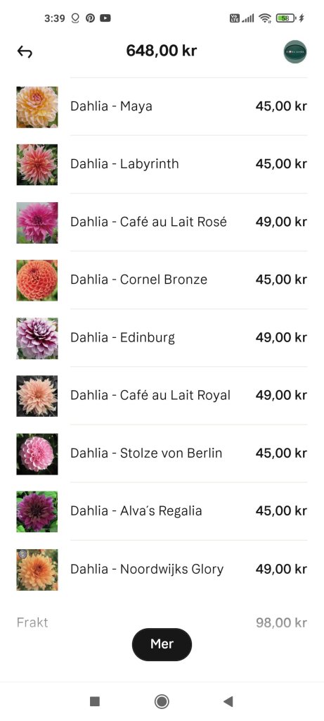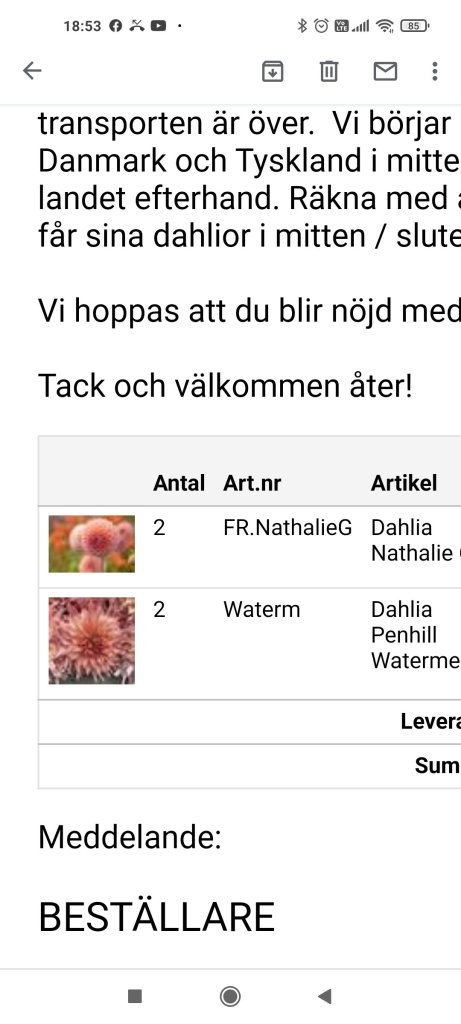 Hej allihop, dÄ var det helg igen. KÀnns som att man knappt har jobbat den sista tiden nÀr det varit en massa röda dagar. Hinner precis komma till jobb sÄ Àr det dags att vara ledig igen. Skönt med lite extra ledigt , men jag blir helt slut i huvudet av att inte följa mina vanliga rutiner. Nu nÀr jag har haft en massa tid över sÄ har jag frossat i dahlia knölar. GÀller att vara ute i god tid och bestÀlla sÄ fort de slÀpps annars försvinner favoriterna direkt. Satte 3 olika sorter förra vÄren och alla tog sig och blommade sÄ fint hela sommaren sÄ nu satte jag mig ner och bestÀllde en massa olika sorter. Ska bli sÄ spÀnnande att följa deras blomning. Har Àven bestÀllt lite olika fröer. Tomater, gurka och luktÀrter Àr ett mÄste. LuktÀrterna blommade ocksÄ superfint hela sommaren och jag plockade buketter nÀstan dagligen och sÄ doftar de ju underbart. LÀngtar sÄ tills jag kan sÄ mina fröer och plantera i trÀdgÄrden. Tiden gÄr fort sÄ snart Àr det dags. I helgen ska jag bara slappa och njuta med familjen. Hoppas ni fÄr en underbar helg!/Madde