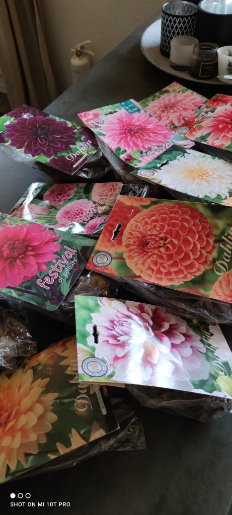 Fick sms igår att jag hade paket att hämta ut så jag och Kevin körde och hämtade ut det i förmiddags. Det var mina fina dahliaknölar som jag beställde för några månader sedan. Älskar när de är förpackade med bilder på så man tydligt kan planera var i rabatten man ska ha dem så cred till Floralinnea som jag beställde dem ifrån.