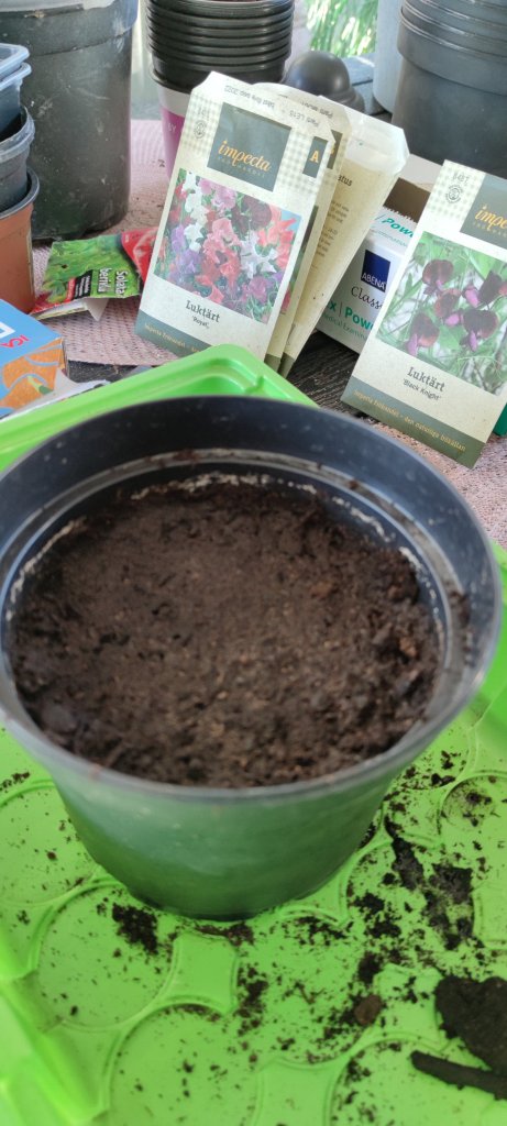 Solen skiner och jag har spenderat mesta delen av dagen än så länge ute i verandan. Idag är det exakt 1 månad sedan jag satte mina paprika frön och det är nu dags för omskolning och plantera om dem i krukor en och en. Mina palettsticklingar som jag köpte har fått stå i glas med vatten för att bilda rötter så de fick också komma i jord idag. Jag har även sått luktärter som är min absoluta favorit i trädgården. När jag sår luktärter så följer jag Cecilia Wingårds odlingsråd för är det någon som är en fena på det så är det hon. Nedan kan ni se hur jag gjort.