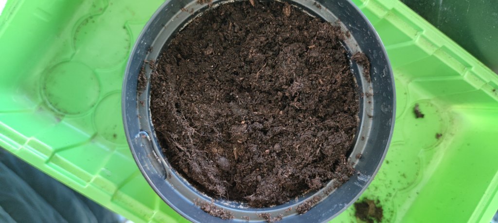 Börja med att fylla en kruka med jord ända upp till kanten och packa sedan den hårt och vattna igenom ordentligt.