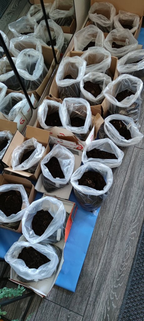 Igår när jag vaknade så blev jag deppig direkt när jag såg att det var mörkt ute och snöade igen. Jag som planerat att jag skulle ut i trädgården och röja. Blev inget med det, men dagen blev ändå mysig. Barnen sov borta så jag och Andrej hade en mysdag, åt god mat och hade serie maraton. Idag däremot så vaknade vi till strålande sol och 7° ute. Förvisso rejäl blåst, men ute i verandan är det varmt och skönt. Perfekt tillfälle att väcka mina dahliaknölar. Sagt och gjort så har jag nu planterat 23 knölar. Var lite väl ambitiös med mina beställningar i år haha, men vi ska nog få plats och får vi inte det så får vi väl gräva oss en rabatt till. Det är fortfarande för kallt för att plantera dem ute i rabatten och jag vet av erfarenhet från förra året att de är smaskens för mördarsniglarna. Därför tänkte jag att i år så ska jag väcka dem till liv och förodla dem inomhus så de är lite mer motståndskraftiga mot de slemmiga små jäklarna. Nedan kan ni se hur jag har gått tillväga.
