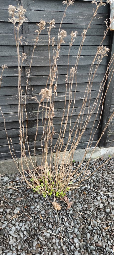 Vilket tråkigt väder att vakna till här i lilla Skåne. Det är alltid så! Fint väder under veckodagarna när man jobbar och sen när det äntligen är helg och jag har planerat att jag ska spendera min lediga tid i trädgården så ska det regna. Jag trotsade vädret en stund iallafall och gick ut och klippte ner mina vissna sparrisar och även phloxen då det kommer en massa nya fina skott därunder nu. Prydnadsgräset i en av krukorna fick sig också en klippning.