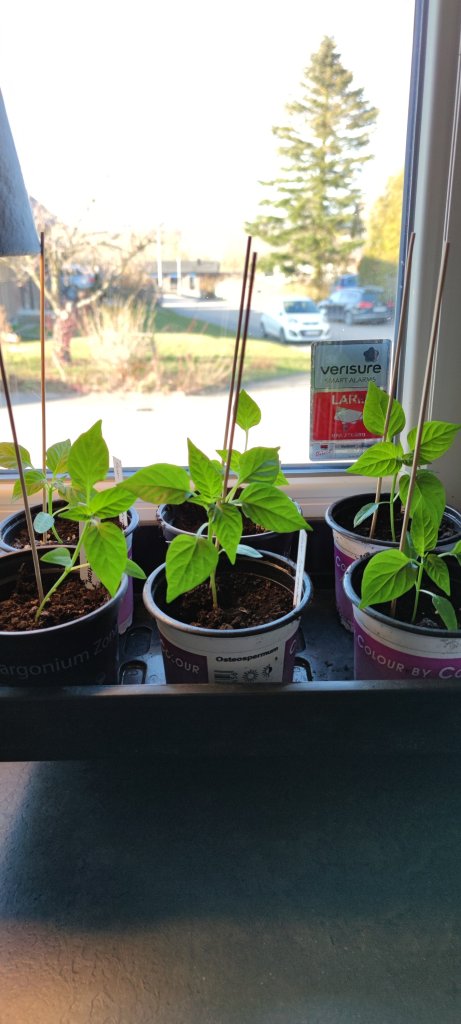 Då var det påsk! Och här är vi dunder förkylda. Emilio började bli dålig förra helgen så han testades i måndags. I tisdags var det Kevins tur att bli sjuk och igår vaknade jag också förkyld. Emilios test var negativt så nu hoppas jag bara att mitt också är det! Nu när man är långledig och hade tänkt åka iväg och handla mer blommor så är det väl klart man ska bli sjuk.Vi hade inget planerat i påsk, men det är ju ändå trist när man känner att man så gärna vill pilla i trädgården, men inte riktigt har ork. Jaja nog om sjukor! Jag har iallafall sått fler luktärter idag. Passade också på att sätta gurkfrön och skola om mina tomater så de fick varsin kruka. Insåg direkt efteråt att jag har inte fler fönster att fylla nu då det är fullt överallt😂 jag har sått lite fler tomater än vad jag tänkte. Närmare bestämt 25 plantor🙈 Luktärterna som jag sådde för några veckor sedan har blivit långa och står kallt så det var även dags att toppa dem. Jag klipper ovanför ett bladpar och detta gör jag för att då blir plantorna kraftigare. Imorgon tänkte jag att jag ska ut och plantera min magnolia som jag köpte i veckan om jag inte mår sämre än idag förstås. Andrej köpte även en taggfri björnbärsplanta som jag inte riktigt bestämt än var den ska få bo, men eventuellt åker den också ner i jorden någonstans om jag hittar en plats. Önskar er alla en riktigt fin kväll och en Glad Påsk 🐣/Madde