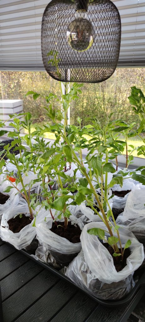 Hej allihop! Var ett tag sedan jag skrev nu. Har ju börjat på ett nytt jobb och har känt att mitt fokus behöver ligga där fullt ut innan jag har lärt mig allt. Nu är det iallafall helg och jag har varit igång sedan imorse och planterat om mina tomater till slutkrukorna, sått melon, satt röd lök, gul lök och potatis i jorden. Har även fyllt på med jord i mina dahlia påsar. De bor numera i vårt uterum. Av 18 knölar är det en som inte alls kommit upp och en som har fått röta och dött. Tog upp den från påsen för att kolla om det fanns något jag kunde rädda på den, men alla tubers var ruttna så det var helt kört för den tyvärr. Paprikorna växer på ordentligt nu också och behöver även de få komma i sina slutkrukor snart, men ja ni vet ju hur det är med plats inomhus hos alla oss odlare🙈 så jag får vänta lite med det. Kapkrusbären har också vuxit fint och i en av krukorna kommer det nu upp fler så de får jag också plantera om i egna krukor. Jätteverbenerna har också tagit sig fint. Fick fler sticklingar på palettblad av Linda och de står nu i vatten och har fått fina rötter så de ska också planteras i krukor, men jag måste inhandla fler krukor först. Nu blir det en dusch för att sen åka in till stan och handla mat. Det är riktigt fint väder ute och 15° så ikväll får det bli grillat och ett dopp i bubbelbadet. Hoppas ni får en riktigt härlig helg!/Madde