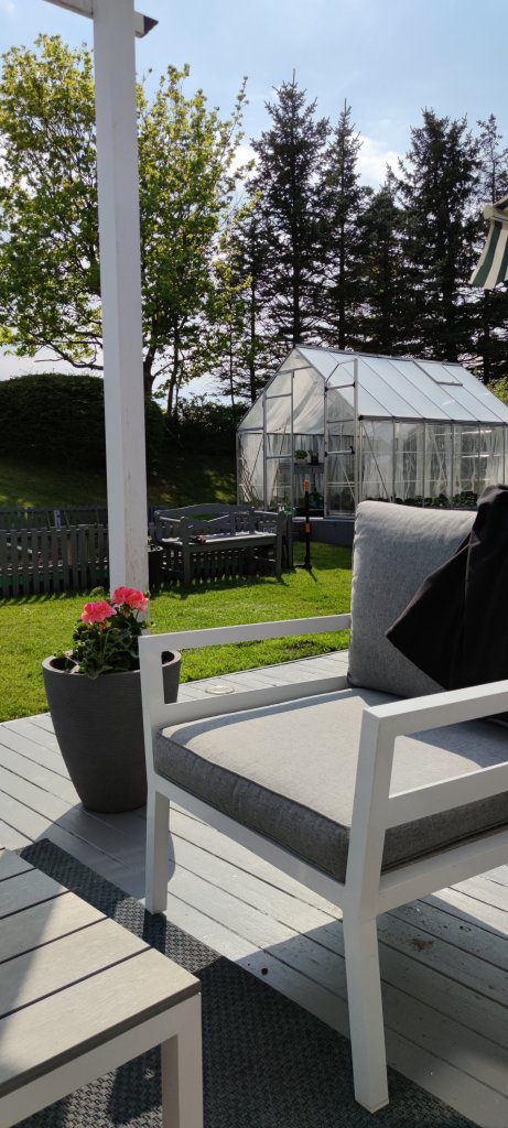 Vilka två härliga dagar vi haft nu! De har såklart spenderats i trädgården. Helt otroligt fint väder och man vill ju inte missa en enda minut av det. Igår fick mina tomater, paprikor och kapkrusbären flytta in i växthuset så nu har vi lite mer plats inomhus. Åkte även iväg och handlade lite fler blommor och ett citronträd fick också följa med hem. På kvällen spelade vi badminton med barnen i trädgården och hade det hur mysigt som helst.
