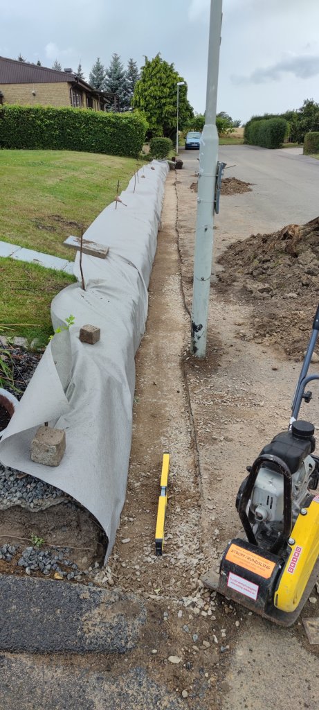 Hej allihop! Vilket tråkigt väder vi haft nu de senaste dagarna! Och såklart ska det komma nu när vi har startat vårt nya projekt. Hela vår framsida var ju inramad av slipers som var helt ruttna så vi bestämde oss för att ta bort dem och bygga en mur av sten istället. Vi började i torsdagskväll med att slita bort slipersen och våra kära grannar kom ut och hjälpte oss. I fredags lastade Andrej på dem på släpet och körde några vändor till tippen. Det var inte det lättaste då de väger ca 80 kg st och var 17 st. Sen kunde vi gräva ur och fylla med makadam och stenmjöl och padda. I fredags började det roliga med att börja lägga ut murstenarna, men det tar otroligt lång tid för allt måste verkligen bli rakt och härute hos oss lutar ju tomten på alla håll och kanter. Vi höll på hela dagen och vid 21 på kvällen kom grannarna ut och sa till oss att nu var det dags att hålla kväll och bjöd in oss på något gott att dricka vilket var väldigt uppskattat. När lördagen kom så såg jag på Andrej att han var helt slut så jag sa till honom att idag behöver du en vilodag älskling och för en gångs skull så lyssnade han på mig. Igår åkte jag iväg till Kiviks marknad med ungdomarna och några vänner som var bestämt sedan några veckor tillbaka. Vi fick fint väder och en riktigt trevlig dag, men hemma regnade det och var mulet. Idag har vi bestämt att vi ska ta tag i muren och fortsätta, men då ösregnar det såklart när vi vaknar. Så trött på detta väder nu! Hoppas det spricker upp och blir uppehåll åtminstone så vi kan fortsätta därute. Det kommer bli riktigt fint när det är klart är jag övertygad om 🙂 Ovanför muren ska jag sedan ha en rabatt med blommor som går i vitt, lila, rosa och några vintergröna varianter. Har inte bestämt än vad det kommer bli, men något som tål torka och som inte har så långa rötter för att undvika onödigt tryck mot muren. Eftersom det lutar rejält ner mot muren så behöver det vara något som inte kan skada den iallafall. Det tar nog lite tid innan vi kommer dit, men det tål att tänkas på iallafall 😉 Jag bjuder såklart på lite bilder från vårt projekt och uppdaterar här så fort det är klart. Kommer lite bilder från trädgården också. Nu håller vi tummarna för uppehåll så vi kan jobba på! Kram Madde