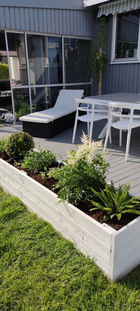 Då var ännu en helg till ända! Den gick otroligt fort bara. Helgen har spenderats med massa roligheter. I fredags när jag kom hem från jobb så blev det en spontan inbjudan hos grannarna. De bjöd på grillat och trevligt sällskap. Igår bjöd Mio på fest då vi firar 60 år och vi blev bjudna på god mat och dricka, härligt sällskap och massa dans. Hade en riktigt trevlig kväll som avslutades med barfotagång till knutpunkten då fötterna var fyllda av blåsor 😂. Idag vaknade jag kl 8:30 hur pigg och glad som helst, förutom fötterna då för de var allt annat än glada kan jag säga haha. Planterade ut mina rosenskära i en av odlingslådorna och även lövkoja. Kände att det får vara på vinst eller förlust för nu börjar jag tröttna på alla plantor inomhus. Det mesta bor i uterummet, men har ändå fortfarande en massa inomhus också. Tog mig också en tur till Blomsterlandet för att se om jag kunde hitta några plantor till mina fina odlingslådor och jag blev så lycklig för jag hittade hur mycket som helst😃 brukar iof inte vara så svårt för mig att hitta något där haha. I år tänkte jag köra på grönt och vitt på trädäcket så jag köpte astilbe, jordreva, lobelior, ormbunkar och snötörel. Buxbomen hittade jag på Lidl faktiskt för några veckor sedan till riktigt bra pris. Dessa planterade jag sedan i odlingslådorna och det blev precis så bra som jag tänkt mig😍 Grönt är skönt faktiskt! Det får bli en tur till för att handla lite till krukorna i pergolan också. Måste även iväg och köpa krukor till mina olivträd som ska få bo även de på trädäcket sen ska Andrej måla däcket och jag ska inreda så vi kan få riktigt mysiga sommarkvällar därute. Vi har äntligen köpt matgrupp också så vi kan sitta därute och äta och det kommer bild på det sen när allt är fixat. Måste säga att jag är mycket nöjd med denna helgen och hoppas ni också haft det bra. Ha det gott så hörs vi snart igen. Kram Madde